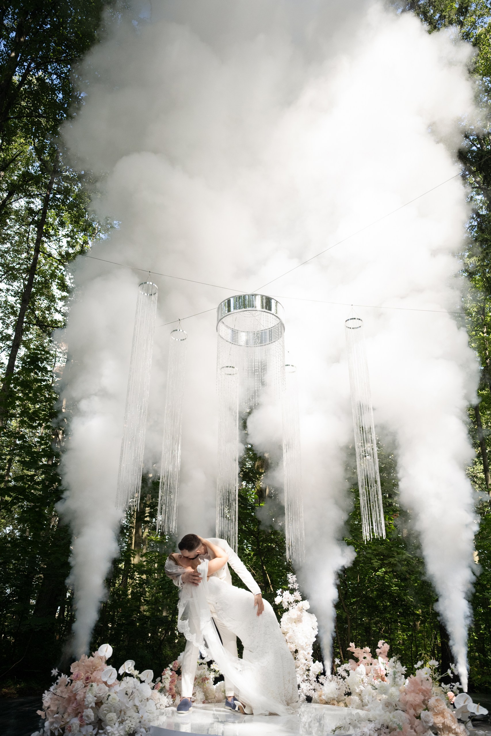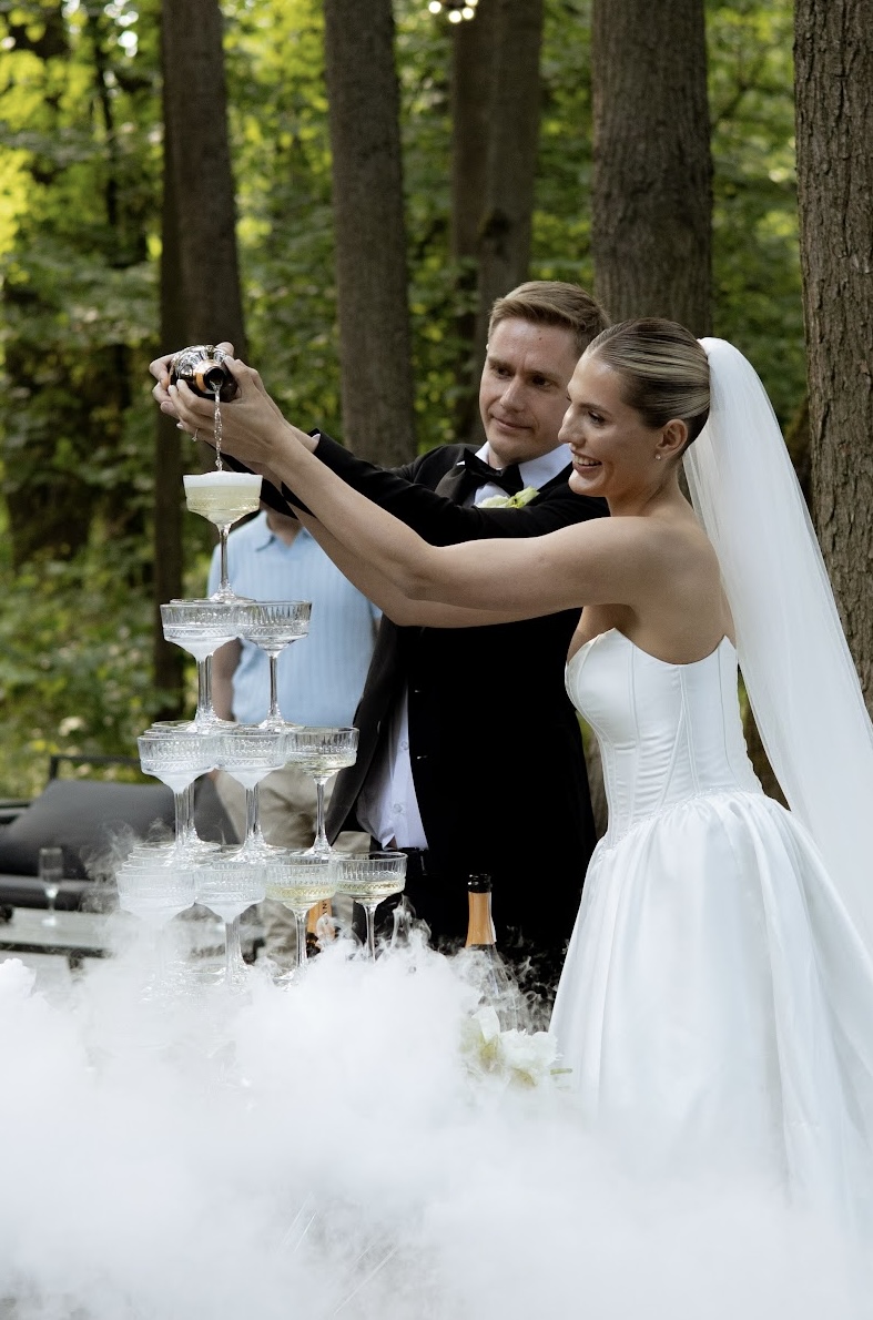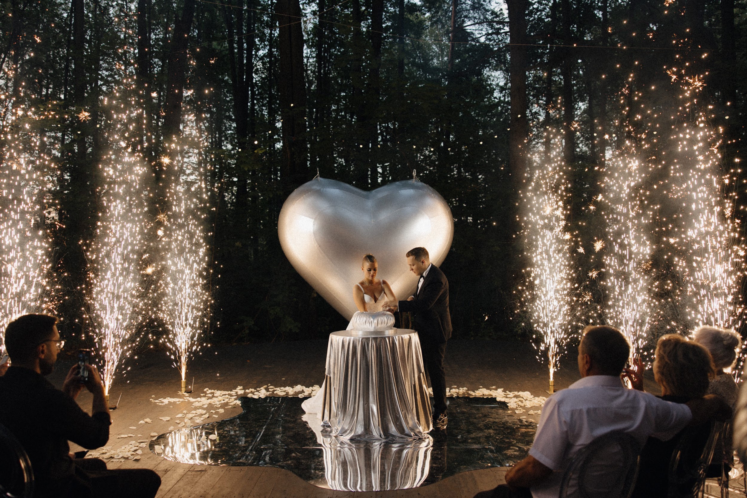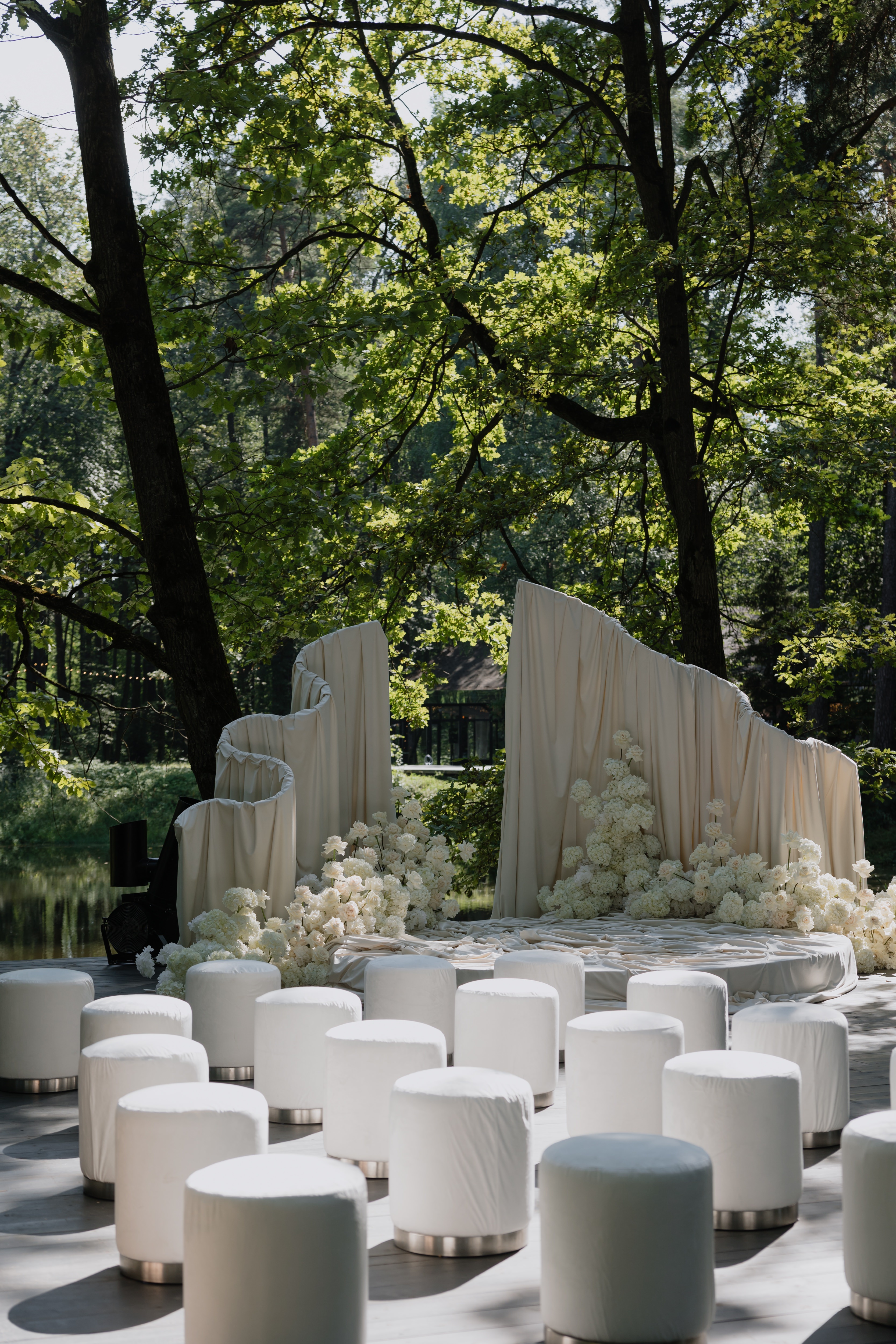 Когда мы впервые приехали на площадку, мы сразу решили, что она станет местом нашей будущей свадьбы. Зеркально гладкое озеро, высокий густой лес — это сказка! На празднике были мы и наши самые близкие дорогие люди, а вокруг — полное уединение! Все окутано свежестью, природой и светом. Очень вкусные блюда и приятный персонал. Ребята, вы лучшие! Спасибо вам за наш день!